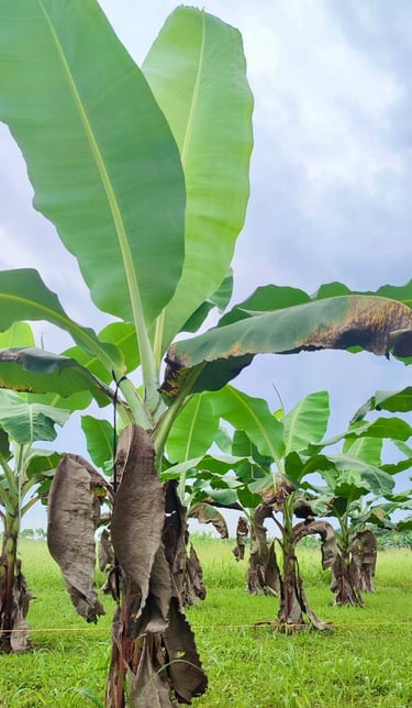 Sigatoka Negra, caused by Mycosphaerella fijiensis, devastates banana crops, reducing yields by 50%.