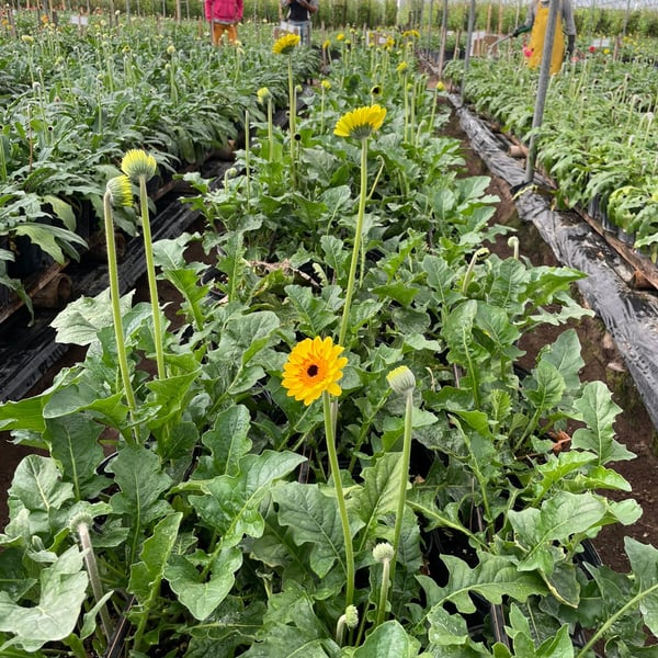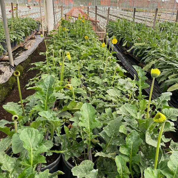 Gerberas tratadas muestran una mejor salud y vigor. Tras 3 meses: aumento del 30%+ en producción. Las fotos muestran las diferencias tras de 4 semanas.