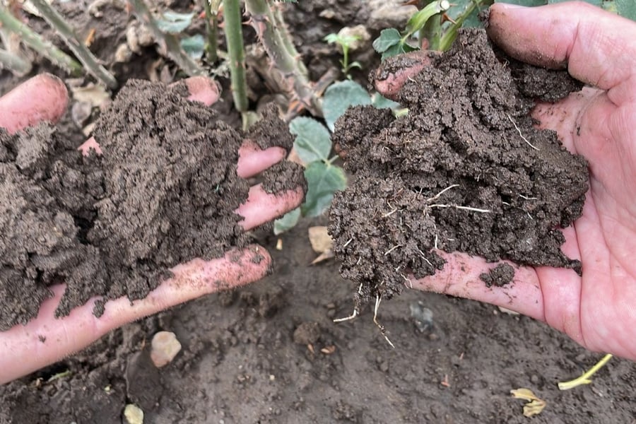 Suelo duro, compactado y estéril transformado en suelo suave, estructurado y lleno de vida microbiana.